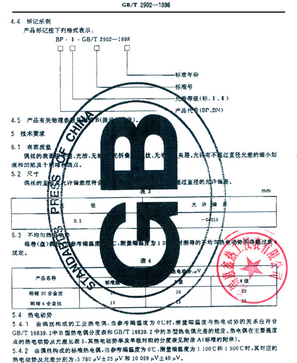 B分度號 鉑銠30-鉑銠6熱電偶標準